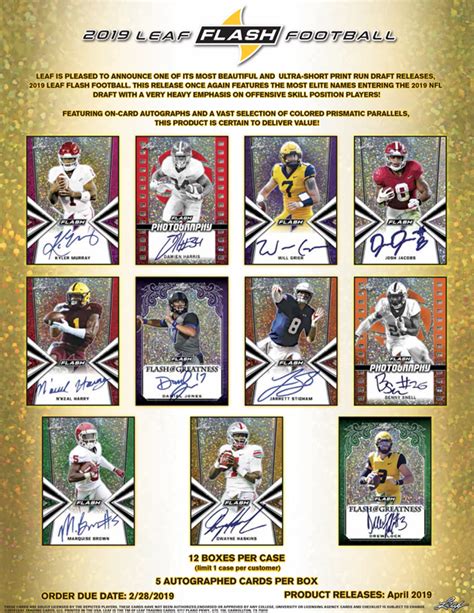 One of the standout features of the 2019 Leaf Flash Football series is its design. The cards are visually striking, with bold colors, dynamic action shots, and a modern aesthetic. Leaf consistently delivers high-quality printing and card stock, ensuring that each card feels premium in hand. The focus on rookies and prospects means collectors have the opportunity to discover the next big thing before they hit the national spotlight. This anticipatory aspect is a significant draw for many in the hobby, who enjoy the thrill of predicting future success.