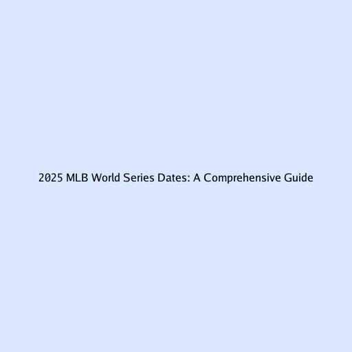 2025 MLB World Series Dates: A Comprehensive Guide