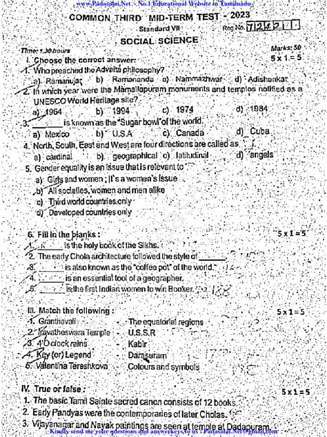 Okay, guys, let’s talk about the real MVPs of your study routine: the 7th standard quarterly exam question paper 2023 social science . These aren’t just old exams; they are treasure troves of information that can significantly boost your preparation. Think of them as a sneak peek into the mind of the examiner. The first and most obvious benefit is understanding the exam pattern and marking scheme . By going through past papers, you’ll quickly grasp the types of questions that are commonly asked – whether they lean towards objective questions (MCQs, fill-in-the-blanks), short-answer questions, or detailed long-answer questions. You’ll also get a feel for the weightage given to different topics. This allows you to allocate your study time more effectively, focusing more on areas that carry higher marks. Secondly, past papers are invaluable for identifying key topics and themes . You’ll notice recurring questions or specific concepts that appear year after year. These are likely the most important areas that your teachers want you to master. For example, you might find that questions about the Mughal administration or the major landforms of India appear consistently. Make these your priority areas for in-depth study. Thirdly, using these papers helps you practice time management . As I mentioned earlier, taking mock tests using past papers under timed conditions is crucial. This helps you build speed and accuracy, ensuring you can complete the exam within the stipulated time without rushing. You learn to pace yourself, moving from one section to another efficiently. Fourthly, analyzing the solutions or model answers (if available) to these papers is incredibly insightful. It shows you how to structure your answers, what level of detail is expected, and the kind of vocabulary or specific points that examiners look for. It’s not just about getting the right answer, but about presenting it in the most effective way. Fifthly, past papers help in identifying your weak areas . When you attempt a paper and review your performance, you’ll immediately see which topics you struggled with. This self-assessment is vital. It allows you to go back to your textbook or notes and focus specifically on those areas that need more attention, rather than wasting time on topics you already know well. Finally, they help in reducing exam anxiety . The more familiar you are with the exam format and the types of questions, the less nervous you’ll feel on the actual exam day. It’s like rehearsing for a play – the more you practice, the more confident you become. So, guys, make sure you get your hands on as many 7th standard quarterly exam question paper 2023 social science samples as you can. Treat them seriously, analyze them thoroughly, and use them as a cornerstone of your revision. They are truly your secret weapon for scoring well!