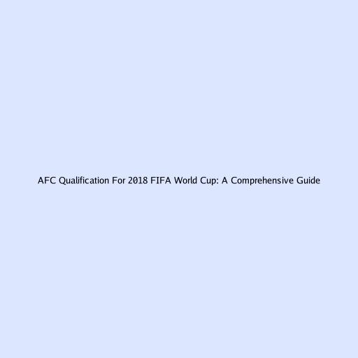 AFC Qualification For 2018 FIFA World Cup: A Comprehensive Guide
