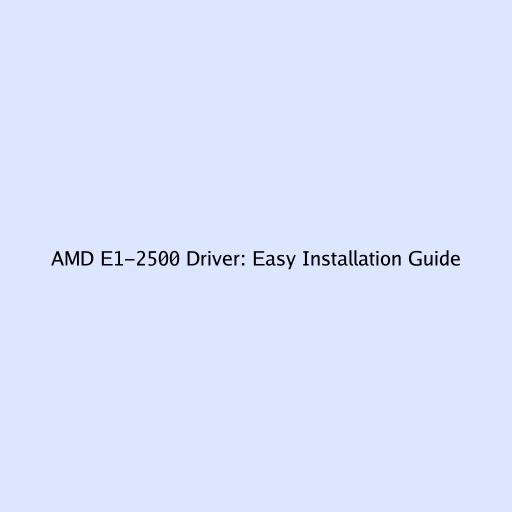 AMD E1-2500 Driver: Easy Installation Guide