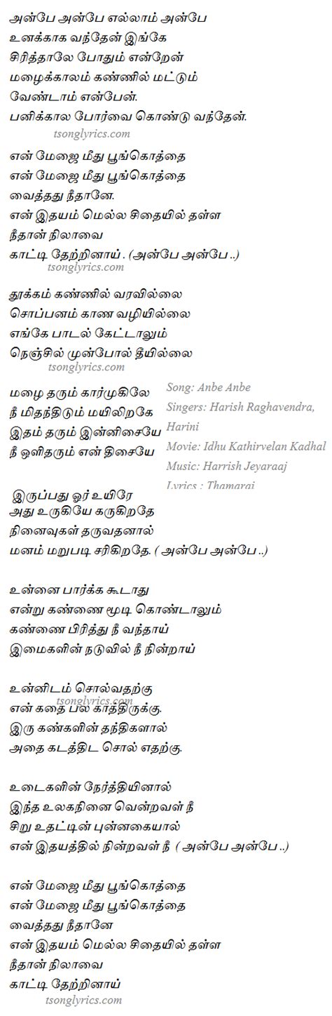 The musical genius behind “Anbe Anbe” is undoubtedly one of the main reasons for its widespread appeal. The song’s melody is hauntingly beautiful , possessing a rare quality that stays with you long after the music fades. It’s the kind of tune that can transport you to a different time and place, evoking a spectrum of emotions, from wistful nostalgia to profound joy. The arrangement is masterful , often featuring a delicate blend of traditional South Indian instruments and contemporary orchestral elements. This fusion creates a soundscape that is both familiar and fresh, appealing to a wide audience. The pacing of the song is also crucial; it’s not rushed, allowing each note to breathe and resonate. This thoughtful pacing lets the melody unfold gradually, drawing the listener deeper into its emotional core. Think about those moments in the song where the music swells, or perhaps a subtle instrumental solo takes center stage – these aren’t accidental. They are carefully placed to amplify the song’s narrative and emotional arc. The choice of instruments often adds a layer of cultural richness. You might hear the gentle strumming of a sitar, the soulful wail of a flute, or the rhythmic pulse of a tabla, all woven seamlessly into the fabric of the song. This rich instrumental palette is not just for show; it serves to enhance the lyrical content, giving voice to sentiments that words alone might not fully capture. The overall effect is a lush and immersive listening experience . It’s easy to see why the music of “Anbe Anbe” has become so iconic; it’s a testament to the composer’s ability to craft melodies that are both sophisticated and deeply accessible. The song doesn’t just play; it sings to your soul, making it a timeless piece of Tamil musical artistry.