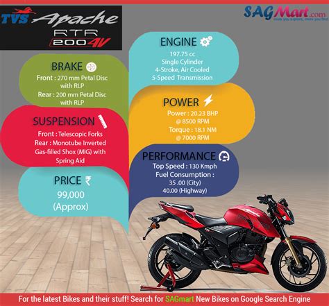Let’s get into the nitty-gritty and talk about the engine and performance of the Apache RTR 200 4V 2016 . This is where the rubber meets the road, and where the Apache RTR 200 4V truly shines. At the core of the bike lies a 197.75cc single-cylinder, oil-cooled engine. This engine is a marvel of engineering, delivering a robust performance that’s both exhilarating and reliable. It’s designed to provide a perfect blend of power and efficiency, making it suitable for various riding conditions. The engine is capable of producing around 20.2 bhp of power at 8,500 rpm and 18.1 Nm of torque at 7,000 rpm. This power output ensures that the bike has plenty of punch, allowing for quick acceleration and effortless overtaking. The torque delivery is particularly impressive, providing a strong mid-range pull that makes the bike fun to ride in both urban and highway scenarios. The Apache RTR 200 4V 2016 features a five-speed gearbox that’s known for its smooth and precise shifts. This gearbox allows riders to easily navigate through gears, providing optimal power delivery at all speeds. The bike’s overall performance is enhanced by its lightweight design, which contributes to its agility and responsiveness. The suspension system plays a crucial role in the bike’s performance. The front telescopic forks and rear monoshock are tuned to provide a comfortable ride while ensuring excellent handling and stability. The suspension setup absorbs bumps and undulations effectively, making the bike composed even on rough roads. The Apache RTR 200 4V 2016 also boasts a responsive braking system, which is essential for rider safety. It’s equipped with disc brakes on both the front and rear wheels, providing excellent stopping power. The brakes are designed to offer a progressive feel, allowing riders to control their braking force with precision. The bike’s overall performance is also influenced by its weight distribution and chassis design. The chassis is engineered to provide a balanced and stable ride, contributing to the bike’s overall handling characteristics. The Apache RTR 200 4V 2016 delivers an impressive fuel efficiency for its class. It typically offers a mileage of around 35-40 kmpl, making it a cost-effective option for daily commuting and long rides. Considering all the components, from the engine specs to the handling characteristics, the Apache RTR 200 4V 2016 is a high-performing bike.