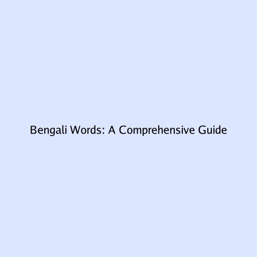Bengali Words: A Comprehensive Guide