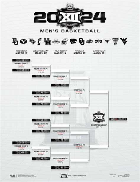 Finding the official Big 12 Tournament bracket is crucial for making informed decisions and staying up-to-date with the latest matchups. The official bracket is typically released shortly after the conclusion of the regular season, usually in early March. The best place to find the official bracket is on the Big 12 Conference’s official website. This website is the primary source for all tournament-related information, including the bracket, schedule, and game results. You can also find the official bracket on ESPN’s website and app. ESPN provides comprehensive coverage of college basketball, and their bracket is usually updated in real-time as the tournament progresses. Another reliable source is the NCAA’s official website. The NCAA oversees college basketball, and their website provides a wealth of information about the tournament, including the official bracket. When you’re looking at the bracket, make sure you’re looking at the most recent version. The bracket can change as games are played and results are determined. So, always double-check the date and time stamp to ensure you’re looking at the latest version. Also, be aware of potential tie-breaking procedures. In some cases, teams may have the same regular-season record, and tie-breaking procedures are used to determine their seeding in the tournament. Make sure you understand these procedures so you can accurately predict the matchups. And finally, be careful of unofficial brackets. There are many websites and apps that offer unofficial brackets, but these may not be accurate or up-to-date. Always rely on official sources for the most reliable information. With the official bracket in hand, you’ll be well-equipped to follow the Big 12 Tournament and make your bracket predictions. So, happy bracketing, folks!