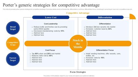 Cost Leadership: This is about being the most efficient producer in your industry. Think of companies like Walmart, which wins through economies of scale, tight cost controls, and streamlined operations. If you can produce goods or services at a lower cost than your rivals, you can offer lower prices, attract more customers, and boost your profit margins. It’s a volume game. This type of strategy often focuses on things like optimizing supply chains, automating processes, and negotiating favorable deals with suppliers. Companies using a cost leadership strategy are constantly looking for ways to reduce their expenses. The goal is to be the lowest-cost producer. Companies that pursue a cost leadership strategy usually have a large market share. This is because they can offer products and services at prices that are more attractive to customers than the competition. The key is to relentlessly cut costs while maintaining acceptable quality. This is an advantage that can be difficult to replicate. This can involve optimizing every aspect of the business, from production to distribution. The benefits of cost leadership include increased market share, higher profitability, and greater bargaining power with suppliers and customers.