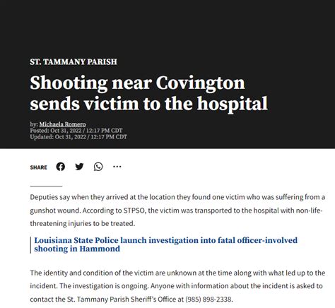 Hey everyone, let’s dive into the breaking news coming out of Covington, Louisiana, today. As your local news source, we’re committed to bringing you the most up-to-date and accurate information about the shooting incident that has occurred. This is a developing situation, and details are still emerging, but we’ll provide you with everything we know so far. Our goal is to keep you informed and safe, so we’ll be constantly updating this article as we receive new information. Please keep checking back for the latest developments, and feel free to share this information with anyone who may be affected or interested. We understand that this kind of news can be unsettling, and we want to assure you that we’re working hard to provide you with reliable and trustworthy updates. This includes verifying all information before it’s published to ensure accuracy. If you have any information related to this incident, please reach out to the authorities immediately. Your cooperation can help ensure the safety of our community. Remember, in times like these, it’s essential to stay informed and stay safe. We will continue to monitor the situation closely and provide updates as they become available. We encourage everyone to remain calm and follow any instructions issued by local law enforcement. We understand that rumors can spread quickly during events such as this, but we strongly advise you to rely on verified news sources for the most accurate information. We’re dedicated to providing you with factual reports and will not spread unconfirmed information. Your safety and well-being are our top priorities. Stay tuned for further updates.