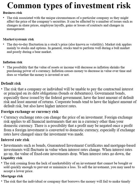 Capital Market Investment Risks Explained