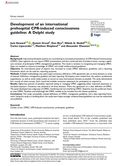 In conclusion, the development of international guidelines for managing consciousness during prehospital CPR is a crucial step towards improving patient outcomes and standardizing care worldwide. Through the use of the Delphi method and collaboration among experts, these guidelines will provide a framework for healthcare providers to effectively manage these complex situations and ultimately save lives. It’s all about making sure everyone gets the best possible care, no matter where they are. Stay tuned for more updates as these guidelines continue to develop!