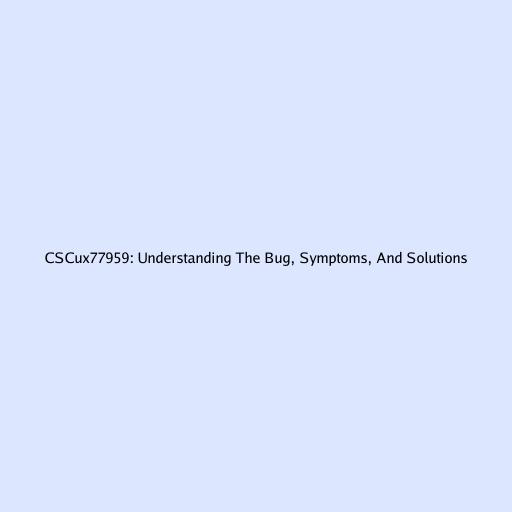 CSCux77959: Understanding The Bug, Symptoms, And Solutions