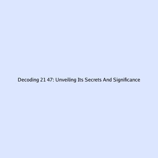 Decoding 21 47: Unveiling Its Secrets and Significance
