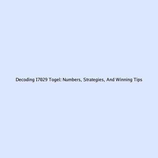 Decoding i7029 Togel: Numbers, Strategies, and Winning Tips