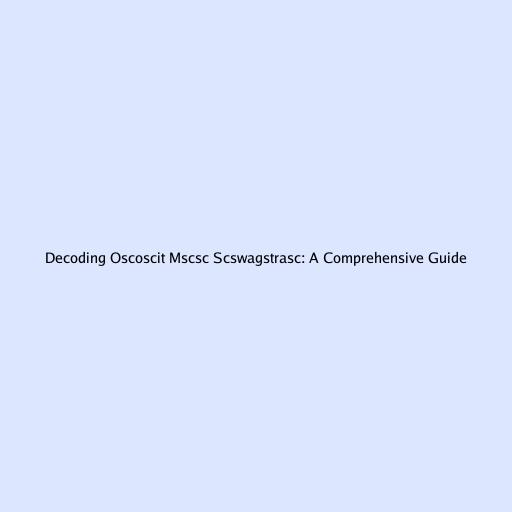 Decoding Oscoscit Mscsc Scswagstrasc: A Comprehensive Guide