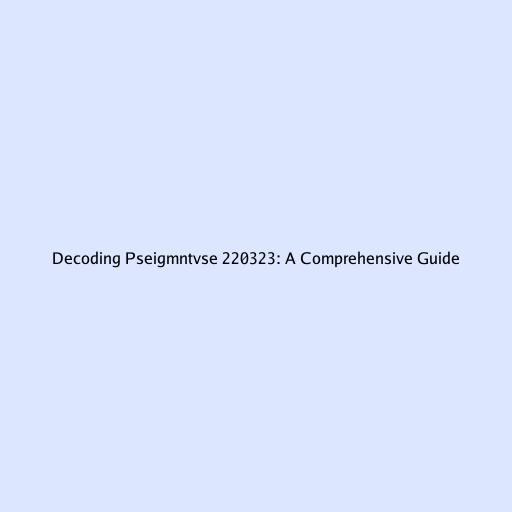 Decoding Pseigmntvse 220323: A Comprehensive Guide