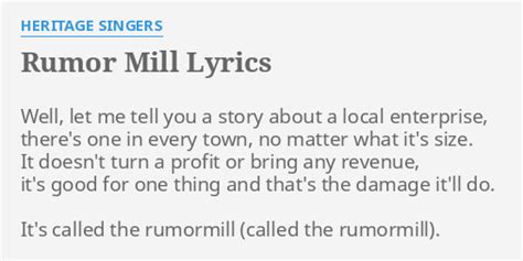 Let’s get into the nitty-gritty: the lyrics . Understanding the lyrics of “Rumor Mill” is like peeling back the layers of an onion – each verse, each line reveals something new and profound. The song is a narrative tapestry, woven with themes of gossip, truth, and the human tendency to create stories. When you first listen, you might catch the surface-level story, but as you dig deeper, you’ll find that the lyrics are rich with metaphors and symbolism. The artist uses language to paint vivid pictures, making you feel like you’re right there in the middle of the drama. Consider the opening verse. It sets the scene, introducing the key players and the initial spark of the rumor. But what’s really going on beneath the surface? Are the characters reliable narrators, or are they adding their own spin to the tale? As the song progresses, the lyrics explore how rumors spread and morph, often twisting the truth beyond recognition. The chorus acts as a powerful refrain, hammering home the central theme of the song. It’s catchy, sure, but it also serves as a reminder of the destructive power of gossip. The lyrics in the chorus often use strong imagery, making the message even more impactful. What about the bridge? This is where the artist typically offers a moment of reflection, providing a new perspective on the events unfolding. In “Rumor Mill,” the bridge might be a moment of clarity, where the characters realize the harm they’ve caused or the truth finally comes to light. Pay close attention to the word choices throughout the song. The artist carefully selects each word to create a specific effect, whether it’s to evoke emotion, build suspense, or reveal character. Even seemingly insignificant words can hold hidden meanings, adding depth and complexity to the overall narrative. So, grab your headphones, pull up the lyrics, and get ready to dive deep. We’re about to unravel the secrets hidden within “Rumor Mill,” one line at a time.