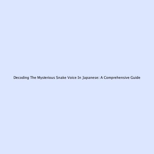 Decoding the Mysterious Snake Voice in Japanese: A Comprehensive Guide
