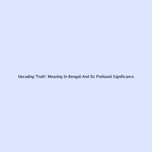 Decoding 'Truth': Meaning In Bengali And Its Profound Significance