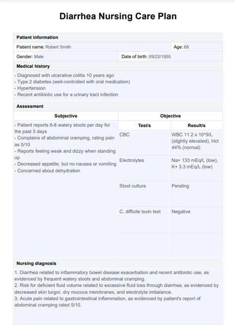 Now, let’s get down to business: key nursing interventions for diarrhea management . Once we’ve got a solid understanding of our patient’s situation, it’s time to act. Our primary goals are to restore fluid and electrolyte balance, manage symptoms, prevent complications, and educate the patient. First and foremost, hydration is king ! For patients with mild to moderate diarrhea, oral rehydration solutions (ORS) are the go-to. These solutions contain the perfect balance of electrolytes and glucose to promote absorption. Encourage small, frequent sips rather than large gulps, which can sometimes trigger nausea or vomiting. If the patient can’t tolerate oral fluids due to vomiting or severe diarrhea, intravenous (IV) fluid replacement becomes essential. We’ll be meticulously monitoring intake and output, tracking urine specific gravity, and assessing for signs of dehydration to guide our fluid resuscitation efforts. Electrolyte imbalances, particularly potassium and sodium, are common and can be dangerous. We need to be vigilant in monitoring lab values and reporting any significant deviations to the healthcare provider. Beyond fluids, dietary modifications play a crucial role. We often start with a bland, low-fiber diet, often referred to as the BRAT diet (Bananas, Rice, Applesauce, Toast), although newer recommendations lean towards a more varied, easily digestible diet as tolerated. The key is to avoid foods that can exacerbate diarrhea, such as dairy products (if lactose intolerant), fatty or fried foods, spicy foods, and high-fiber or raw fruits and vegetables. Gradually reintroducing foods as symptoms improve is vital. Pharmacological interventions are also part of the picture. Antidiarrheal medications like loperamide can be effective for symptomatic relief in certain situations, but caution is advised, especially in cases of infectious diarrhea, as they can prolong the illness by trapping the causative agent. Bulk-forming agents and probiotics might also be considered to help restore gut health and regulate bowel function. Hygiene and infection control are non-negotiable, especially when infectious causes are suspected. Meticulous handwashing for both the patient and healthcare providers is paramount. Depending on the suspected pathogen, contact precautions may be necessary to prevent the spread of infection to others. This includes wearing gloves and gowns when providing care. Comfort measures are also incredibly important for patient well-being. Frequent perineal care with a barrier cream is essential to prevent skin breakdown from frequent, caustic stools. Offering pain relief for abdominal cramping and providing a calm, restful environment can significantly improve the patient’s experience. Lastly, patient education is a cornerstone of effective management. We need to empower our patients with the knowledge to manage their condition at home. This includes explaining the importance of hydration, dietary recommendations, when to seek medical attention, and proper hygiene practices. Teaching them to recognize signs of dehydration or worsening symptoms is critical for preventing complications. Remember, guys, our role is multifaceted. We’re not just administering meds; we’re educators, advocates, and comforters, all rolled into one. By implementing these key interventions thoughtfully and systematically, we can significantly improve outcomes for our patients experiencing diarrhea.