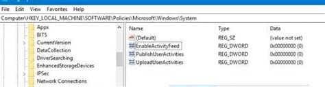 EnableActivityFeedandUploadUserActivitiesvalues that you created earlier, or you can modify them by setting their value data to1(one).