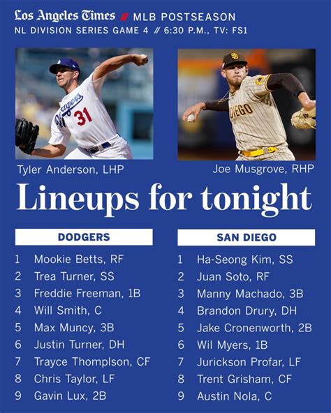 Dodgers Vs. Padres Game 4 Lineup Showdown