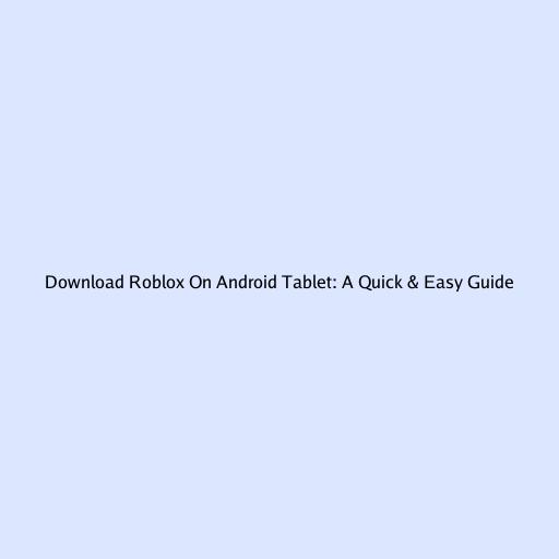 Downloading Roblox on Your Android Tablet: A Quick & Easy Guide