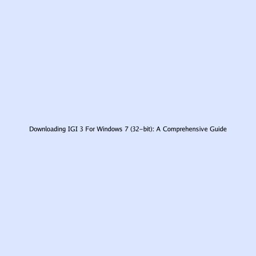 Downloading IGI 3 For Windows 7 (32-bit): A Comprehensive Guide