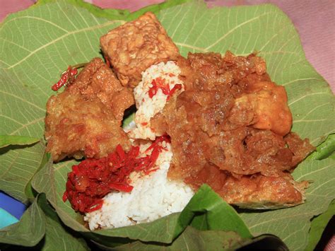 Moving on from street food, let’s talk about Nasi Timbel . This is a complete meal experience that showcases West Java’s love for fragrant rice and flavorful side dishes. Nasi Timbel consists of steamed rice wrapped in banana leaves, giving it a unique aroma and subtle flavor. The rice is typically served with a variety of side dishes such as fried chicken, empal gepuk (flattened fried beef), tofu, tempeh, salted fish, and lalap (fresh vegetables). The banana leaf not only imparts a distinct fragrance to the rice but also helps to keep it moist and warm. Opening the banana leaf to reveal the steaming rice is an experience in itself, releasing a tantalizing aroma that whets your appetite. The side dishes are carefully chosen to complement the rice, offering a balance of flavors and textures. Fried chicken provides a crispy and savory element, while empal gepuk offers a tender and flavorful beef option. Tofu and tempeh add a vegetarian-friendly component, and salted fish provides a salty kick. The lalap, consisting of fresh vegetables like cucumber, lettuce, and basil, adds a refreshing crunch. Nasi Timbel is often served with sambal terasi (shrimp paste chili sauce), which adds a spicy and umami-rich element to the meal. Eating Nasi Timbel is a communal experience, often enjoyed with family and friends. It’s a celebration of West Java’s agricultural bounty and culinary traditions. So, if you’re looking for a hearty and authentic West Javanese meal, Nasi Timbel is an excellent choice. It’s a true representation of the region’s rich culinary heritage.