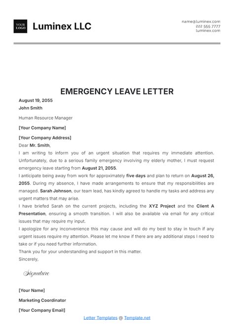 So there you have it! Writing a family emergency leave letter doesn’t have to be a daunting task. By following these guidelines and using the sample template, you can create a clear, concise, and professional letter that effectively communicates your needs. Good luck, and remember, your family comes first!