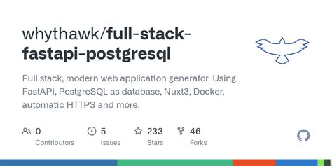 To run this, save your files (e.g., main.py , database/models.py , database/schemas.py , database/database.py , database/session.py ), make sure you have an __init__.py in your database folder to make it a package, and run uvicorn main:app --reload from your project’s root directory. You can then access the interactive API docs at http://127.0.0.1:8000/docs . This is a solid FastAPI PostgreSQL example GitHub foundation you can build upon!