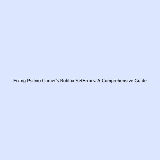 Fixing Psilvio Gamer's Roblox SetErrors: A Comprehensive Guide