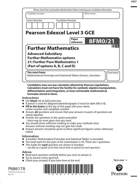 Firstly, let’s break down the FP1 2022 Edexcel exam itself. This exam is a crucial part of the Further Mathematics A-Level, and it’s designed to test your understanding of various advanced mathematical concepts. You’ll need a solid grasp of algebra, complex numbers, matrices, and further calculus to nail this one. The exam typically lasts for a certain amount of time, and it’s structured to assess your problem-solving skills and ability to apply these concepts to real-world scenarios. It’s a challenging exam, no doubt, but with the right preparation, you can totally crush it. Remember, it’s not just about memorizing formulas; it’s about understanding the underlying principles and being able to apply them flexibly. The exam format usually includes a mix of question types, from straightforward calculations to more complex, multi-step problems that require critical thinking. Knowing the exam structure, the weighting of each topic, and the type of questions you can expect is half the battle. So, familiarise yourself with the past papers and mark schemes to get a feel for the exam’s style and the level of detail required in your answers. Practice, practice, practice! The more you work through past papers and practice questions, the more comfortable you’ll become with the exam format and the types of problems you’ll face. And don’t forget to manage your time effectively during the exam. Allocate your time wisely to each question, and don’t spend too long on any single problem. If you’re stuck, move on and come back to it later if you have time. The aim is to maximise your score by attempting all the questions you can, even if you don’t fully solve them. Showing your working is essential, even if you don’t get the final answer. You’re trying to demonstrate your understanding of the concepts. Keep calm, read each question carefully, and break it down into manageable parts. Make sure you understand what the question is asking before you start solving it. Double-check your answers and make sure your calculations are accurate. Also, don’t be afraid to ask your teachers, classmates, or online resources for help if you’re struggling with any concept. Remember, everyone learns at their own pace, and it’s okay to ask for help when you need it. By understanding the exam structure, the types of questions, and the importance of practice and time management, you’ll be well on your way to acing the FP1 2022 Edexcel exam.