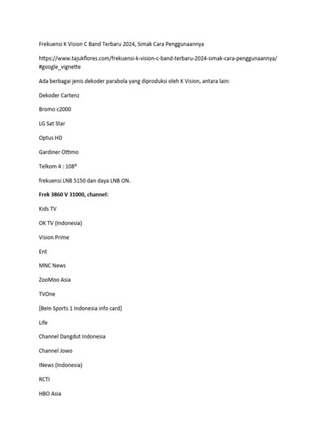 4. Cek sumber resmi. Sekali lagi, untuk informasi yang paling akurat dan terbaru, selalu rujuk ke website resmi K Vision, forum K Vision, atau hubungi customer support mereka. Cari informasi dengan kata kunci seperti “frekuensi K Vision Palapa D terbaru” atau “channel K Vision Telkom 4”.