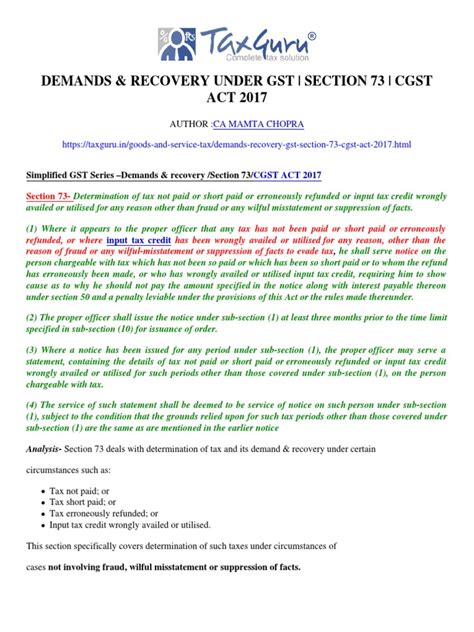 Understanding Section 73 of the GST Act