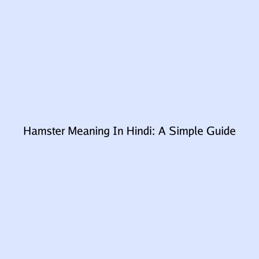 Hamster Meaning in Hindi: A Simple Guide