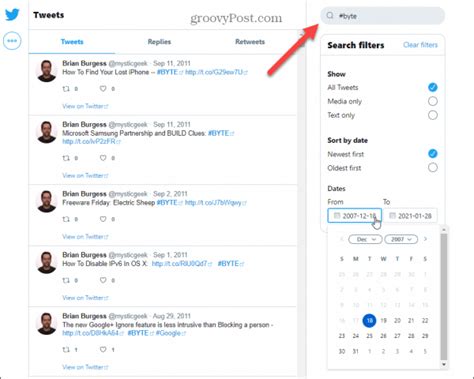 2. Filter by Date and Keywords: Once you’re in your browser history, filter the results by date to narrow down your search. Try to remember the approximate date or time frame when you watched the video. Then, use keywords like “Twitter,” “video,” “tweet,” or specific usernames to further refine your search. For example, you could search for “Twitter video funny cat” if you remember watching a funny cat video on Twitter.