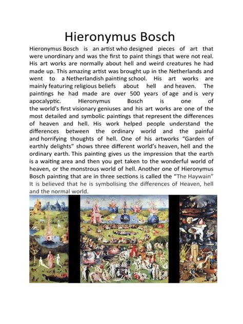 Okay, so why all the fuss about saying Hieronymus Bosch correctly? Well, for starters, it shows a level of respect for the artist and his historical context. Proper pronunciation connects us more directly to the person and the culture they came from. It’s like speaking a foreign language – getting the pronunciation right, even just close to it, shows you’ve put in the effort to understand. Secondly, it aids in clear communication. When you’re in an art history class, a museum, or even just chatting with fellow art lovers, using the correct pronunciation ensures everyone knows exactly who you’re talking about. Mispronouncing names can sometimes lead to confusion, especially with historical figures who might have similar-sounding names. Finally, and perhaps most importantly for us art nerds, it just feels good to get it right! It’s a small victory, a badge of honor that says, “I know my art history!” It enhances your engagement with the subject matter and can even make you feel more connected to the art itself. So, next time you’re admiring Bosch’s intricate and often unsettling visions of heaven, hell, and everything in between, drop his name with confidence and a touch of flair. You’ve earned it!