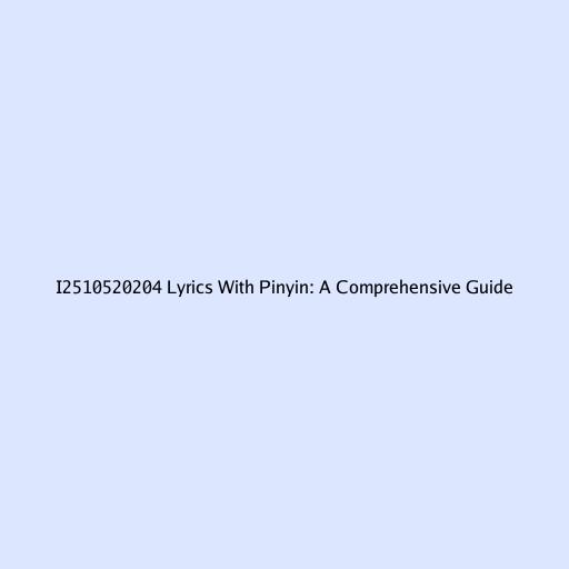 i2510520204 Lyrics with Pinyin: A Comprehensive Guide