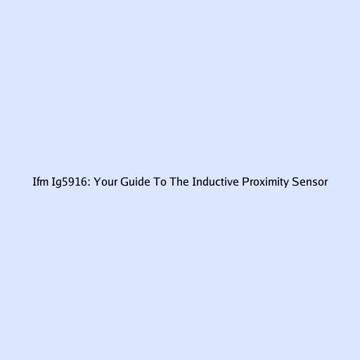 Ifm Ig5916: Your Guide To The Inductive Proximity Sensor