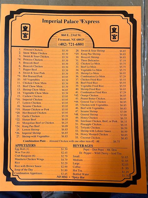 Hey guys! Today, we’re diving deep into the culinary delights of the Imperial Palace Fremont NE menu . If you’re in Fremont, Nebraska, and craving some delicious Chinese food, you’ve probably heard of or are looking for this specific spot. We’re going to break down what makes their menu so special, highlight some must-try dishes, and give you all the juicy details you need to plan your next meal. Get ready to feast your eyes (and soon, your stomachs!) on what Imperial Palace has to offer. We’ll cover everything from classic appetizers to hearty main courses and even those sweet treats that finish off a meal perfectly. So, buckle up, food lovers, because we’re about to embark on a flavor journey!
