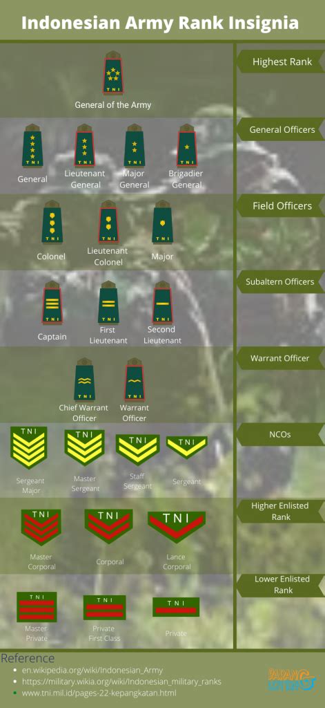 Hey everyone! Ever wondered about the structure and hierarchy within the Indonesian military? Well, you’re in luck! This guide breaks down the military ranks in Indonesia for 2024 , giving you a clear picture of how things work. Whether you’re a military history buff, a student of international relations, or just plain curious, this article is designed to be your go-to resource. We’ll explore the ranks within the Indonesian National Armed Forces (Tentara Nasional Indonesia, or TNI), which includes the Army (TNI-AD), the Navy (TNI-AL), and the Air Force (TNI-AU). So, grab a coffee, settle in, and let’s dive into the fascinating world of Indonesian military ranks.