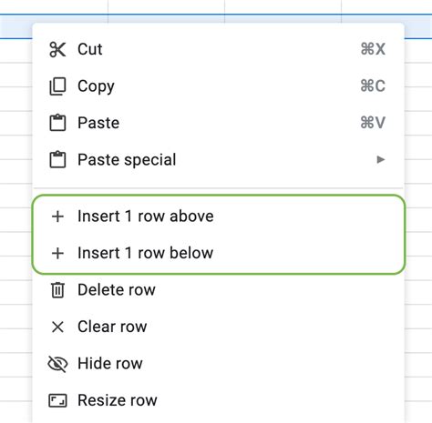 • Copy and Paste Rows: If you need to insert a row with specific formatting or formulas, you can copy an existing row and then insert it where you need it. Simply select the row you want to copy, press Ctrl + C (or Cmd + C on a Mac) to copy it, then insert a new row using one of the methods above, and finally, press Ctrl + V (or Cmd + V on a Mac) to paste the copied row into the new row. This can save you a lot of time and effort, especially if you have complex formatting or formulas to replicate.
