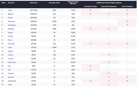 Internet Shutdowns in India: Ranking and Impact
