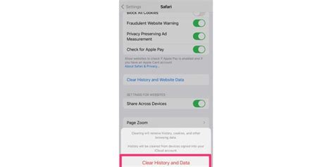 3. Scroll down again and tap on Clear History and Website Data .