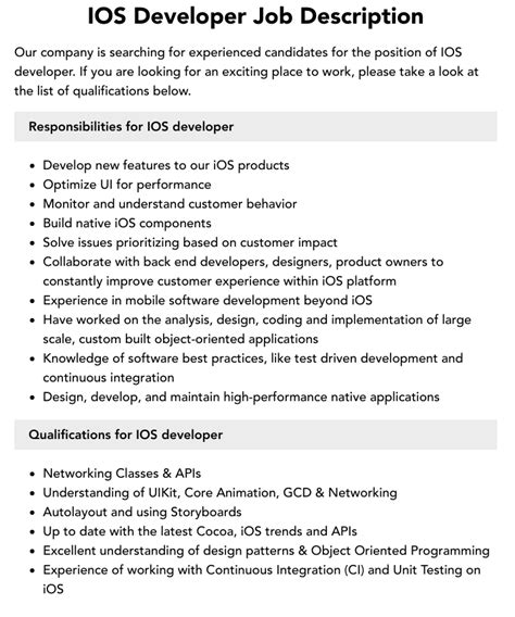 • Stack Overflow Jobs: Specifically for developers, Stack Overflow Jobs is a great place to find iOS development roles. You can search by technology, location, and company size. Plus, you can showcase your Stack Overflow profile to demonstrate your coding skills.