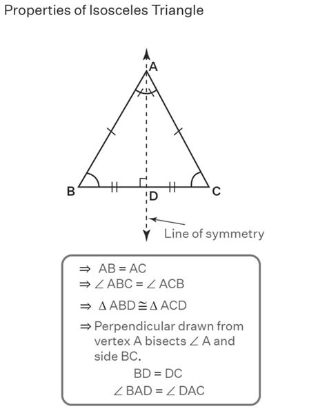 3. Axis of Symmetry: Isosceles triangles have an axis of symmetry, which is the line that bisects the vertex angle and splits the triangle into two identical halves. This symmetry helps us visualize and solve problems. Think of folding the triangle along this line – the two halves would perfectly overlap.