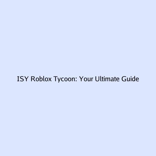 ISY Roblox Tycoon: Your Ultimate Guide