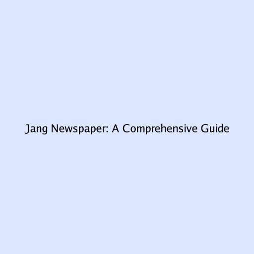 Jang Newspaper: A Comprehensive Guide