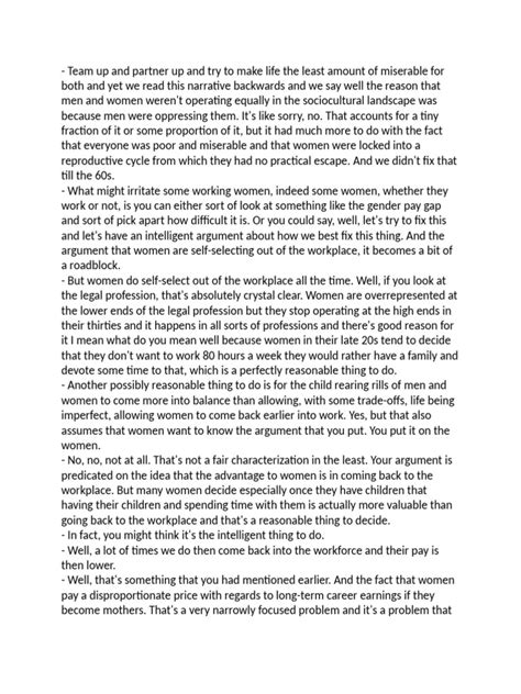 • The Wage Gap: Peterson often challenges the notion that the gender wage gap is solely attributable to gender discrimination. While acknowledging that discrimination may play a role, he points to other factors such as differences in career choices, work experience, and negotiation styles between men and women. He argues that a more nuanced analysis is needed to fully understand the complexities of the wage gap, and that simplistic explanations can be misleading.