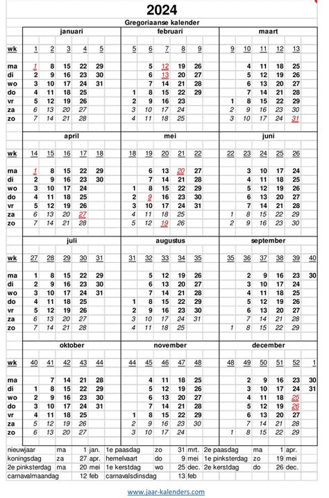 Laten we eerlijk zijn, in de moderne wereld is tijd kostbaar. Een kalender helpt je om je tijd effectief te beheren, maar een kalender met weeknummers tilt dit naar een hoger niveau. Weeknummers zijn vooral handig als je in een projectteam werkt, deadlines moet halen, of je persoonlijke doelen in kleinere, behapbare stukjes wilt opdelen. In plaats van alleen naar de datum te kijken, kun je direct zien in welke week van het jaar je je bevindt. Dit maakt het plannen van afspraken, vergaderingen en vakanties een stuk eenvoudiger. Bovendien zijn weeknummers essentieel voor branches zoals logistiek, productie en retail, waar planning vaak op wekelijkse basis gebeurt. Een kalender 2024 met weeknummers geeft je dus niet alleen een overzicht van de dagen en maanden, maar ook een helder inzicht in de wekelijkse voortgang. Of je nu een student bent die zijn tentamens plant, een professional die projecten beheert, of gewoon iemand die zijn sociale leven wil organiseren, een kalender met weeknummers is een onmisbaar hulpmiddel. Het stelt je in staat om vooruit te denken, deadlines te respecteren en je tijd optimaal te benutten. Kortom, het is de ultieme tool om je leven georganiseerd en efficiënt te leiden in 2024.