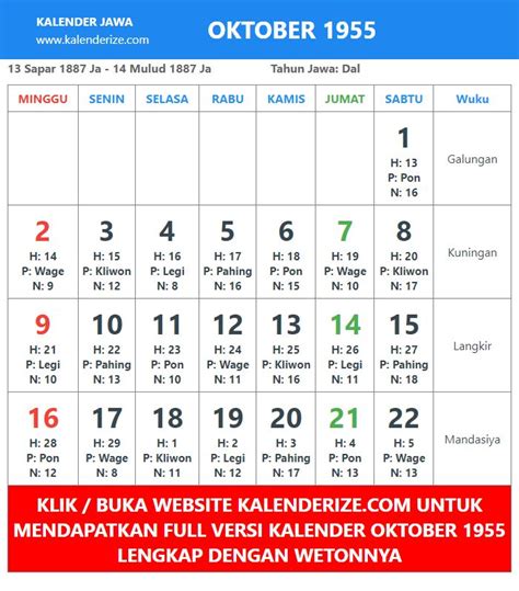Sebelum kita terjun langsung ke kalender Oktober 2018, penting banget buat kita ngerti dulu apa sih sebenernya weton itu dan kenapa orang-orang masih banyak yang percaya sama perhitungannya. Weton itu adalah gabungan dari hari dalam kalender Masehi (Senin, Selasa, dst.) dengan hari dalam kalender Jawa (Pasaran: Kliwon, Legi, Pahing, Pon, Wage). Jadi, setiap hari itu punya nilai pasaran masing-masing yang kemudian dihitung buat menentukan kecocokan, watak, rezeki, dan jodoh. Ini udah jadi semacam warisan budaya turun-temurun di Indonesia, khususnya di pulau Jawa, yang masih dipegang teguh oleh banyak orang. Percaya atau tidak, perhitungan weton ini sering banget jadi pedoman buat ngambil keputusan penting. Misalnya, ada orang yang percaya kalau weton tertentu itu cocok banget buat jadi pengusaha, sementara weton lain lebih cocok jadi karyawan atau seniman. Ada juga yang pakai weton buat nentuin kapan waktu yang tepat buat menikah, biar hubungan rumah tangganya langgeng. Nah, perhitungan weton ini sebenarnya nggak rumit-rumit amat kok, guys. Intinya, setiap hari dalam seminggu (Senin-Minggu) punya bobot angka tertentu, dan setiap pasaran Jawa juga punya bobot angka sendiri. Kalau dijumlahkan, hasilnya bakal nunjukkin karakter unik dari weton tersebut. Jadi, jangan heran kalau nanti pas kita lihat kalender Oktober 2018, ada tulisan kayak ‘Senin Kliwon’, ‘Selasa Legi’, dan seterusnya. Itu semua adalah bagian dari sistem perhitungan weton yang punya makna tersendiri. Kalau kamu penasaran sama makna wetonmu sendiri, kamu bisa cari tahu lebih lanjut di berbagai sumber. Tapi yang jelas, di artikel ini kita bakal fokus nyajiin tanggalannya lengkap sama wetonnya biar kamu gampang buat referensi.